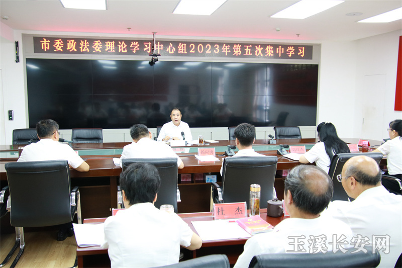 7月31日,玉溪市委政法委开展理论学习中心组2023年第五次集中学习,深入学习领会习近平生态文明思想,深入学习领会习近平总书记关于加强和改进统一战线工作的重要思想、关于加强和改进民族工作的重要思想、关于宗教工作的重要论述,深入学习领会习近平总书记关于安全生产、应急管理、防灾减灾救灾工作的重要论述,要求充分发挥政法机关职能作用,强化政治担当,推动“三湖”环境治理保护,全力防范化解重大安全风险,更好统筹发展和安全,营造良好的社会环境。