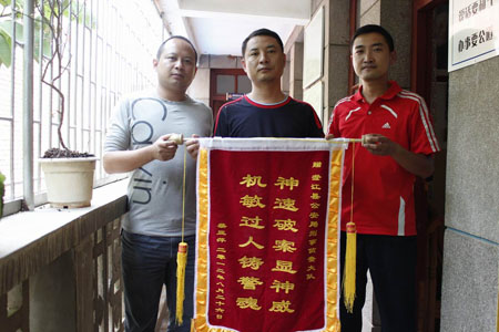 失主送锦旗到刑侦大队表示感谢 玉溪新闻网讯(李大伟 钟云摄影报道)8月28日,澄江县公安局刑侦大队收到一面写有“神速破案显神威 机敏过人铸警魂”的锦旗。原来民警及时为失主追回被盗的苹果平板电脑、手机等物,失主为表谢意遂将锦旗赠送警队。 7月29日1时许,昆明的蔡某某电话报称:其在右所镇公园被人把包偷走,里面有一部诺基亚手机、一台苹果平板电脑,还有一些钱,总价值1万多元。经了解,7月29日凌晨1时许,蔡某某将挎包放在右所镇新河口的一间房屋内便到沙滩游玩,随后挎包被人盗走。经查,挎包内装有一台价值4700元的苹果平板电脑、一部价值1700元的诺基亚手机、个人身份证、驾驶证等物。 案发后,澄江县公安局刑侦大队通过侦查发现在澄江打工的田某某有重大作案嫌疑。经工作,民警在田某某的暂住处将其抓获,并同时查获了部分被盗物品。经审讯,犯罪嫌疑人田某某对盗窃的犯罪事实供认不讳。 8月28日,民警将查获的物品返还给失主。 编辑:李海燕